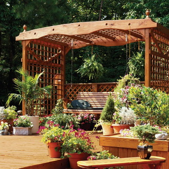 Slovo „hrnce“ v doslovném překladu z francouzštiny znamená „skrýt květinu“. Ve skutečnosti květináč neskrývá rostliny, ale pouze zdůrazňuje jejich krásu a stává se důstojným rámem pro milost květinového kouzla. Květináče zároveň rozšiřují možnosti umístění květin v altánu – nejen podlahové, ale i závěsné modely pomohou zpestřit interiér. Na stěnách nebo pod stropem altánu se bude skvěle vyjímat rostlina s dlouhými listy nebo květy podobnými révě.