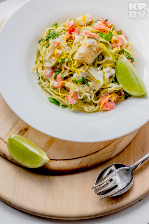 5. Zalijeme smetanou, přidáme citronovou a limetkovou kůru, sůl a přidáme krevety. Udržujte na střední teplotě po dobu 2-3 minut.