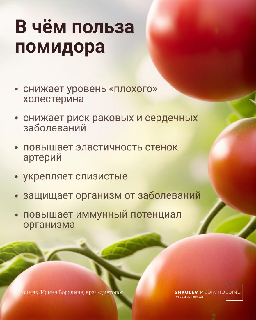 — Lykopen je silný antioxidant, včetně snížení rizika rakoviny a srdečních chorob. Nejvíce se ho nachází ve slupce rajčat. A čím je bobule červenější, tím je v něm vyšší koncentrace lykopenu, říká nutriční specialistka Irina Toropygina. „Kromě toho rajčata snižují hladinu špatného cholesterolu, zvyšují elasticitu stěn tepen a jsou účinná v prevenci rakoviny.