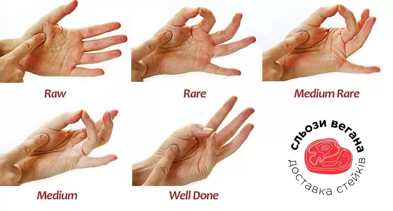 Kuchyňský teploměr není vždy po ruce. Zvláště pokud se steak připravuje venku. V tomto případě můžete k určení stupně pražení pochoutky použít vlastní ruku: