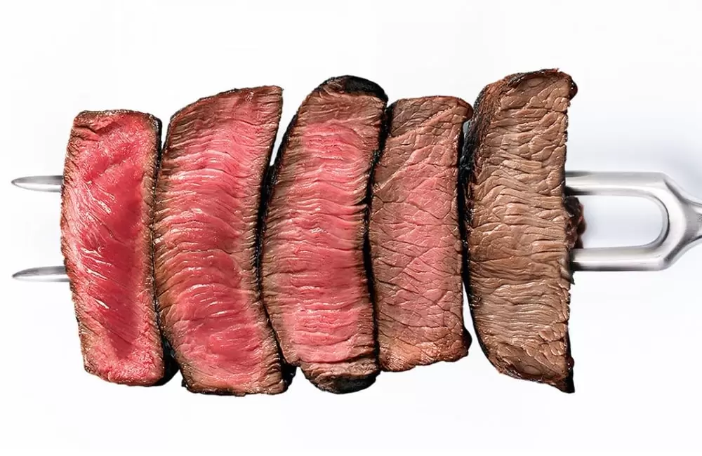 Tradičně existuje 6 hlavních stupňů propečení masových steaků: