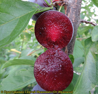 Švestková čínská Santa Rosa má středně rané zrání. Odrůda švestky „Santa Rosa“ se vyznačuje velmi velké ovoce, v průměru asi 40 gram. Plody o hmotnosti 30–35 g jsou kulatého tvaru s výrazným švem a tenkou slupkou s bílým nebo šedým povlakem. Dužnina je šťavnatá a má vynikající chuť a vůni. Kost se špatně odděluje. Dozrává v první polovině srpna. kulovité, mírně asymetrické. od lila až po tmavě fialovou barvu.Dezertní chuť. Dužnina je chutná, olejovitá nebo lehce křupavá, s želatinovou strukturou, šťavnatá, velmi aromatická. Podle výsledků degustací plody švestky Santa Rosa velmi dobrá chuť (degustační skóre od 4.3 do 4.5 bodů). Návštěvníci našich stránek hodnotí chuť švestek této odrůdy 8.2 z 10, tj. přibližně 4.1 body z 5. Pokud máte tuto odrůdu, můžete ji ohodnotit (v horní části stránky) nebo zanechat recenzi. Potřebujete průvodce oceánem odrůd nebo máte dotazy ohledně zahrady? Přejděte na kanál telegramu „Fruit and Berry Messenger“ a připojte se!
