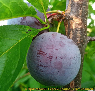 Strom je mohutný, s kulovitou korunou, s jasně zelenými podlouhlými listy. Listy, barva kůry a další vlastnosti stromu jsou velmi podobné třešňové švestce. Přečtěte si více o výběru sazenice.